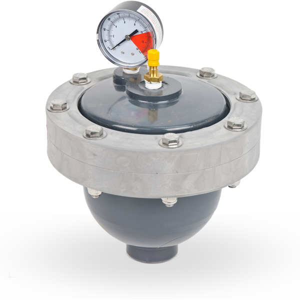 ประกอบด้วยถุงยืดหยุ่นซึ่งทำหน้าที่แยกก๊าซเฉื่อยแรงดัน (อากาศหรือไนโตรเจน) ออกจากของเหลวของระบบในห้องด้านล่างมีให้เลือกวัสดุที่ทนทานต่อสารเคมีหลายประเภท ตัวหน่วงกันกระแทกแบพัลส์จะช่วยขจัดแรงกระแทกไฮดรอลิกเกือบทั้งหมด เพิ่มประสิทธิภาพรอบด้านและความน่าเชื่อถือสำหรับการไหลของของเหลวในการใช้งานทางอุตสาหกรรมและการถ่ายโอนสารเคมี